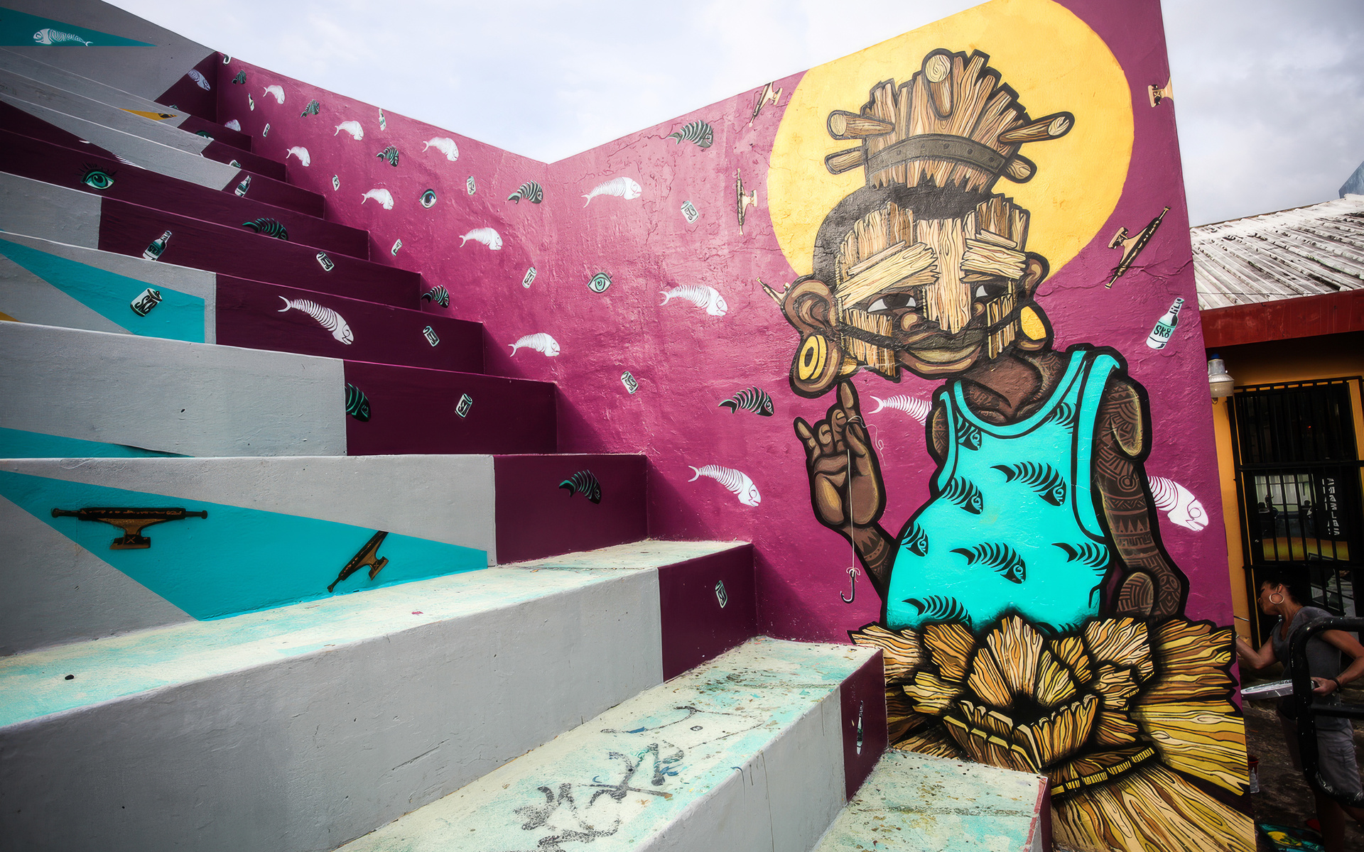 In the summer of 2016, I traveled to Puerto Rico to document a group of artists working to revitalize local communities through public art. This project was a deeply personal journey for me. As part of the Puerto Rican diaspora, it was my first time truly connecting with my heritage and culture on the island. Working with programs like Vive Borikén and Arecibo es 500, I used documentary photography to archive the creation of murals that brought new energy to Rincon and Arecibo.